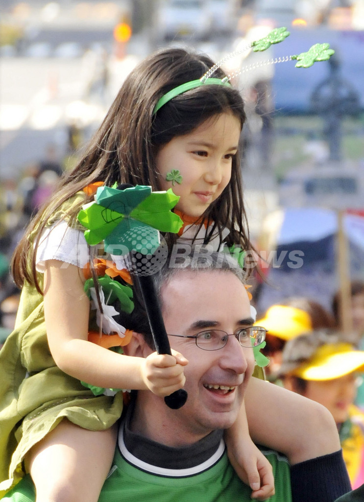 ニュース ライフ 聖パトリックスデーのパレード 2010年3月14日 18:04 発信地:東京 [ アジア・オセアニア 東京 ] このニュースをシェア ‹ › ❮ 1/9 ❯ アイルランドの聖人、聖パトリック(St.Patrick)の命日でアイルランドの祝日「セント・パトリックス・デー(St.Patrick's Day)」を17日に控え、都内で14日、パレードが開かれ、約2000人の参加者が街を練り歩いた。写真は緑色の衣装で父親と一緒にパレードに参加する女の子(2010年3月14日撮影)。(c)AFP/Yoshikazu TSUNO 画像作成中 ! 【3月14日 AFP】アイルランドの聖人、聖パトリック(St.Patrick)の命日でアイルランドの祝日「セント・パトリックス・デー(St.Patrick's Day)」を17日に控え、都内で14日、パレードが開かれ、約2000人の参加者が街を練り歩いた。(c)AFP ライフ 一覧へ> メディア・報道関係・法人の方向け 写真・動画 購入のお問合せ>
