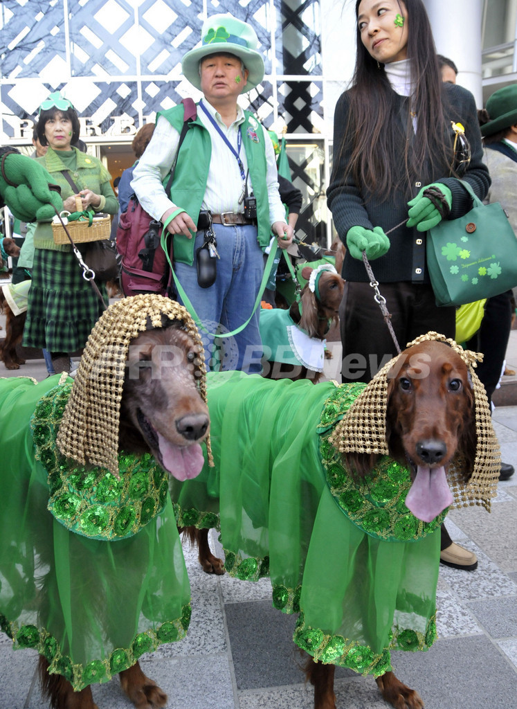 ニュース ライフ 聖パトリックスデーのパレード 2010年3月14日 18:04 発信地:東京 [ アジア・オセアニア 東京 ] このニュースをシェア ‹ › ❮ 6/9 ❯ アイルランドの聖人、聖パトリック(St.Patrick)の命日でアイルランドの祝日「セント・パトリックス・デー(St.Patrick's Day)」を17日に控え、都内で14日、パレードが開かれ、約2000人の参加者が街を練り歩いた。写真は緑色の衣装でパレードに参加するアイリッシュセッタークラブのメンバーと犬たち(2010年3月14日撮影)。(c)AFP/Yoshikazu TSUNO 画像作成中 ! 【3月14日 AFP】アイルランドの聖人、聖パトリック(St.Patrick)の命日でアイルランドの祝日「セント・パトリックス・デー(St.Patrick's Day)」を17日に控え、都内で14日、パレードが開かれ、約2000人の参加者が街を練り歩いた。(c)AFP ライフ 一覧へ> メディア・報道関係・法人の方向け 写真・動画 購入のお問合せ>