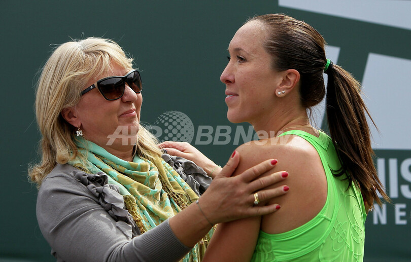 写真は優勝を果たし、母Snezanaさんと喜ぶエレナ・ヤンコビッチ(右)。(2010年3月21日撮影)(c)AFP/Getty Images/Jeff Gross