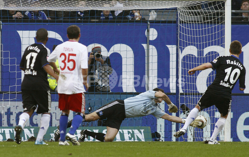 【3月22日 AFP】09-10ドイツ・ブンデスリーガ1部は21日、第27節が各地で行われ、2位のシャルケ04(Schalke04)がハンブルガーSV(Hamburger SV)と2-2で引き分け、首位浮上のチャンスを逃した。