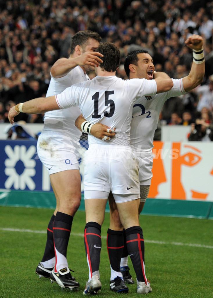 【3月22日 AFP】ラグビーシックスネイションズ(Six Nations Rugby 2010)第5週、フランス対イングランド。試合はフランスが12-10で勝利し、6年ぶりのグランドスラム(全勝優勝)を飾った。