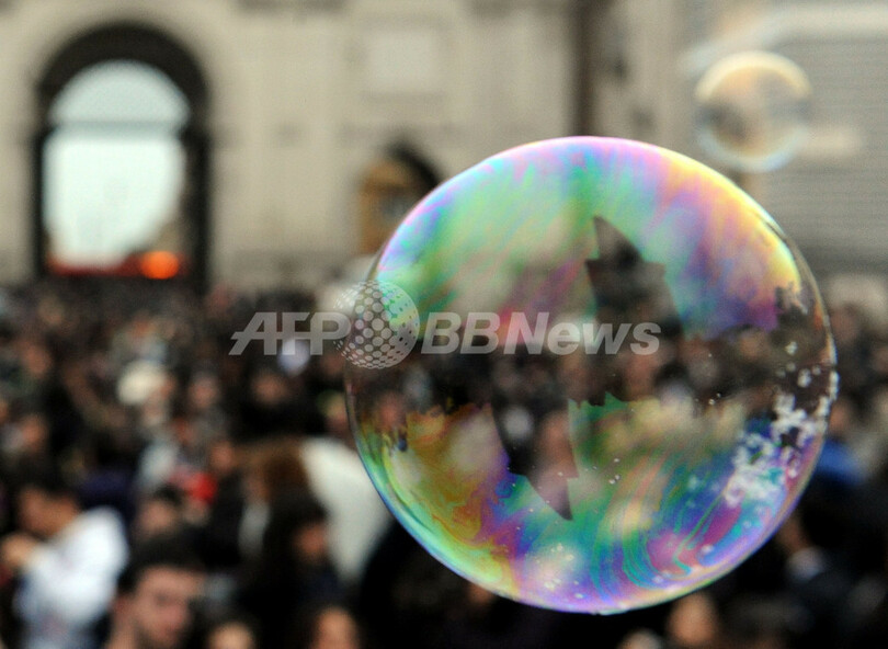 【3月22日 AFP】イタリア・ローマ(Rome)で21日、ポポロ広場(Piazza del Popolo)にシャボン玉を吹く人びとの大集団が出現した。見知らぬ人びとがインターネットの呼びかけに応じて特定の場所に集結するイベント「フラッシュモブ」によるもので、広場では春の陽光のなかを数千のシャボン玉が漂っていた。(c)AFP