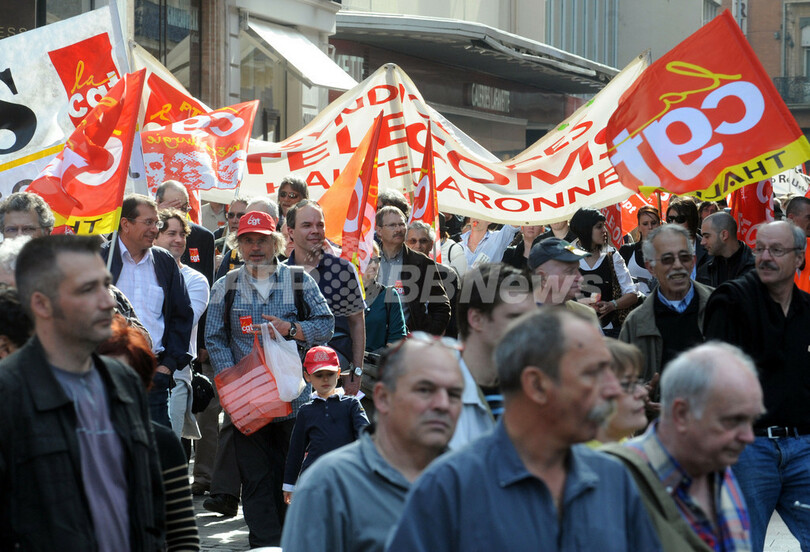 フランス各地では同日、年金問題や雇用問題をめぐって、数十万人規模の大規模なストライキや抗議活動が行われた。地方選でも大敗を喫するなど、サルコジ大統領に対する非難の声が高まっている。(c)AFP