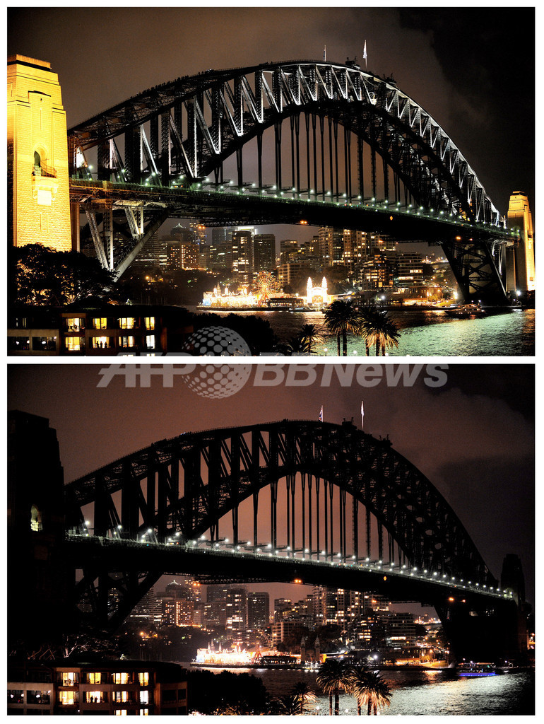 【3月27日 AFP】(写真追加)地球温暖化防止を呼び掛け、1時間の消灯を促す国際啓発キャンペーン「アースアワー(Earth Hour)」が27日、世界各地で行われる。アースアワーもことしで4回目。過去最大の125か国から自治体数千が参加する。エジプトのピラミッドやパリ(Paris)のエッフェル塔(Eiffel Tower)、中国の紫禁城(Forbidden City)の照明が次々と落とされる予定だ。(c)AFP