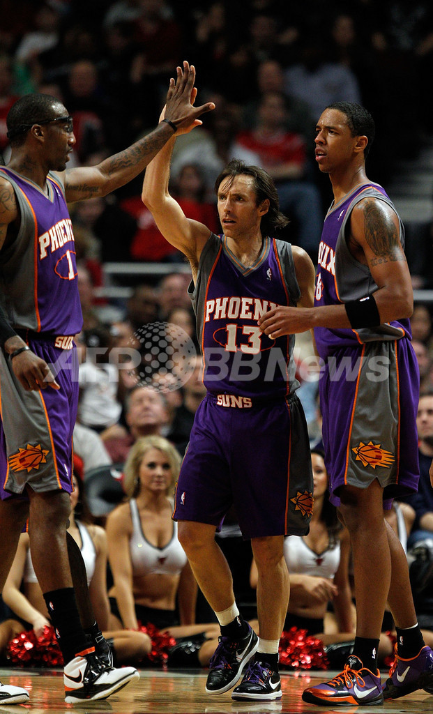 【3月31日AFP】09-10NBA、シカゴ・ブルズ(Chicago Bulls)対フェニックス・サンズ(Phoenix Suns)。サンズは111-105で勝利し、プレーオフ進出を決めた。