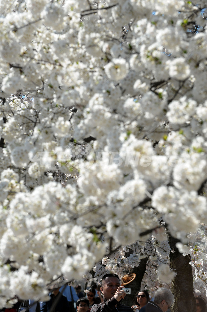 【4月1日 AFP】米国・ワシントンD.C.(Washington D.C.)の桜の名所、タイダル・ベイスン(Tidal Basin)で、日本から約100年前に送られた数千本の桜の並木が今年も満開を迎えた。タイダル・ベイスンでは毎春、「全米桜祭り(National Cherry Blossom Festival)」が開催され、多くの観光客を魅了する。今年の花の開きは例年よりやや早いという。(c)AFP