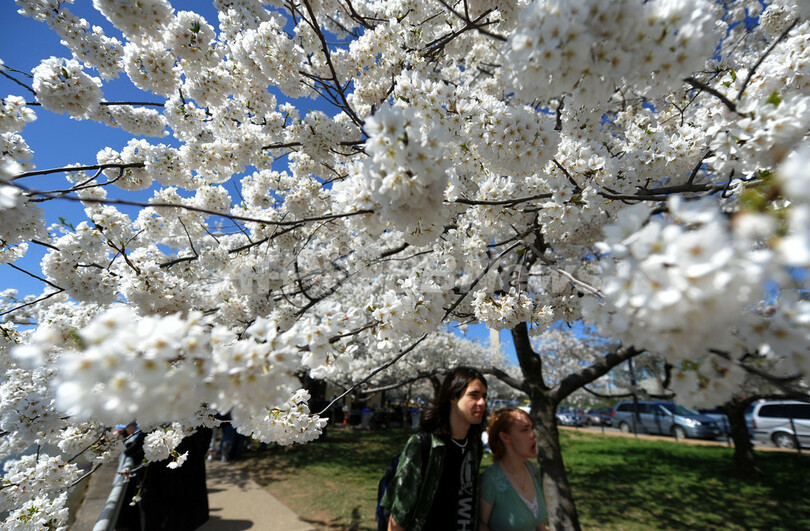 【4月1日 AFP】米国・ワシントンD.C.(Washington D.C.)の桜の名所、タイダル・ベイスン(Tidal Basin)で、日本から約100年前に送られた数千本の桜の並木が今年も満開を迎えた。タイダル・ベイスンでは毎春、「全米桜祭り(National Cherry Blossom Festival)」が開催され、多くの観光客を魅了する。今年の花の開きは例年よりやや早いという。(c)AFP