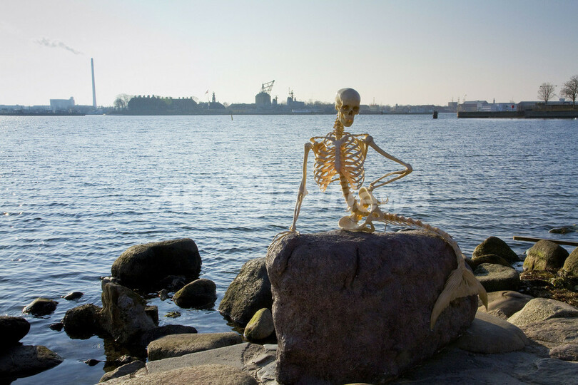 デンマーク自然史博物館(Natural History Museum of Denmark)は像が設置されていた場所に、上半身は人間の骨、下半身はメカジキの骨で作った「人魚姫の骨格」を置いた。ご丁寧に「尾」の骨までついている。