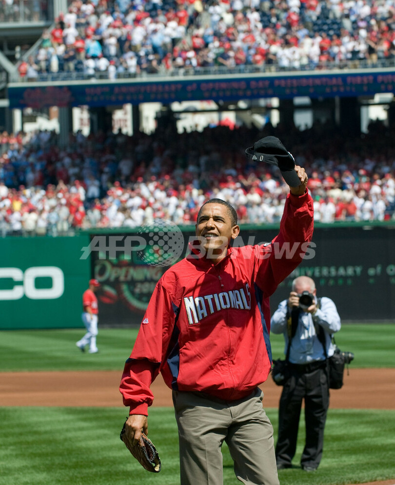 【4月6日 AFP】バラク・オバマ(Barack Obama)米大統領は5日、ワシントンD.C.(Washington D.C.)を本拠地とする米大リーグ(MLB)、ワシントン・ナショナルズ(Washington Nationals)対フィラデルフィア・フィリーズ(Philadelphia Phillies)の開幕戦の始球式で登板した。今年は、1910年4月に当時のウィリアム・ハワード・タフト(William Howard Taft)大統領が初めて現職大統領として大リーグで始球式を行ってから100周年にあたる。