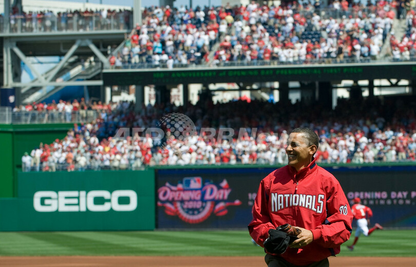 【4月6日 AFP】バラク・オバマ(Barack Obama)米大統領は5日、ワシントンD.C.(Washington D.C.)を本拠地とする米大リーグ(MLB)、ワシントン・ナショナルズ(Washington Nationals)対フィラデルフィア・フィリーズ(Philadelphia Phillies)の開幕戦の始球式で登板した。今年は、1910年4月に当時のウィリアム・ハワード・タフト(William Howard Taft)大統領が初めて現職大統領として大リーグで始球式を行ってから100周年にあたる。