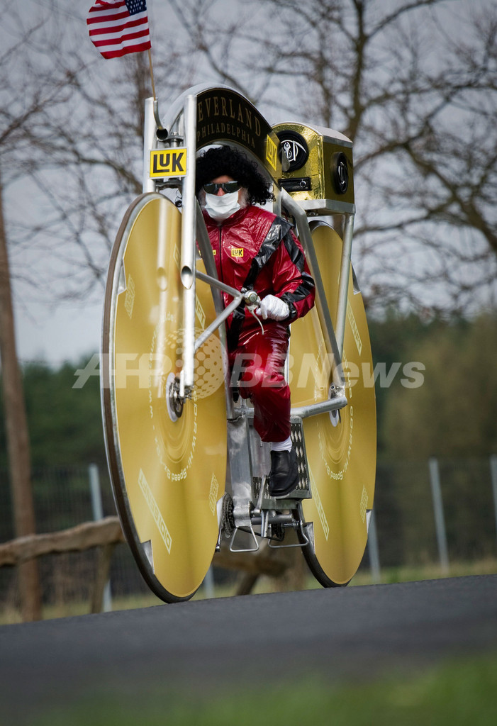 【4月7日 AFP】自転車デザイナーで、自らを「ツール・ド・フランス(Tour de France)の悪魔」と名乗るディディ・センフト(Didi Senft)さんが6日、ドイツ東部の都市シュトルコウ(Storkow)で最新作Jacko-Bikeを公開した。