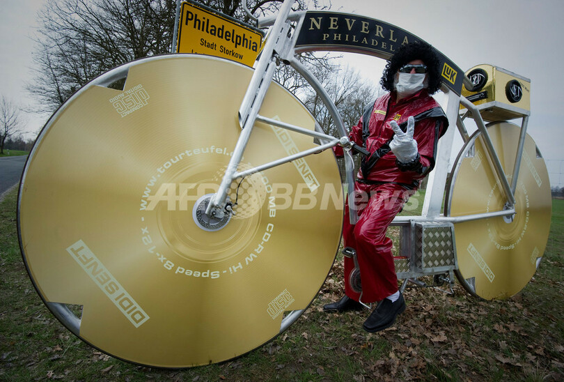 【4月7日 AFP】自転車デザイナーで、自らを「ツール・ド・フランス(Tour de France)の悪魔」と名乗るディディ・センフト(Didi Senft)さんが6日、ドイツ東部の都市シュトルコウ(Storkow)で最新作Jacko-Bikeを公開した。