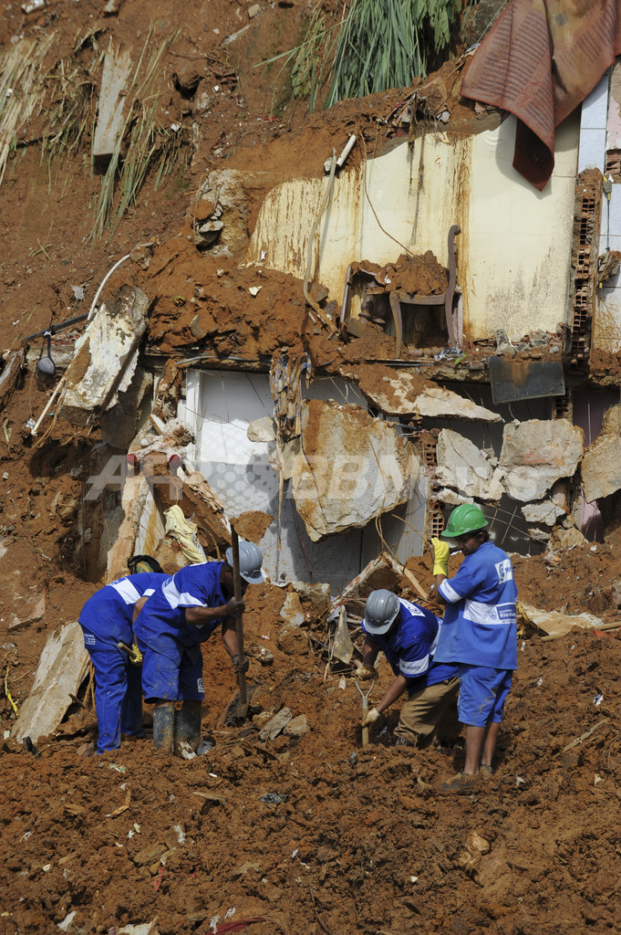 【4月8日 AFP】(一部更新、写真追加)50年来の集中豪雨に見舞われたブラジル・リオデジャネイロ(Rio de Janeiro)州では、洪水や土砂崩れで7日夜までに少なくとも145人の死亡が確認された。多くの住宅が被害を受け、1400人が避難を余儀なくされている。依然多数が行方不明になっており、大規模な土砂崩れで住宅45棟が流されたとの情報もあることから、死者数は今後も増加する恐れがある。