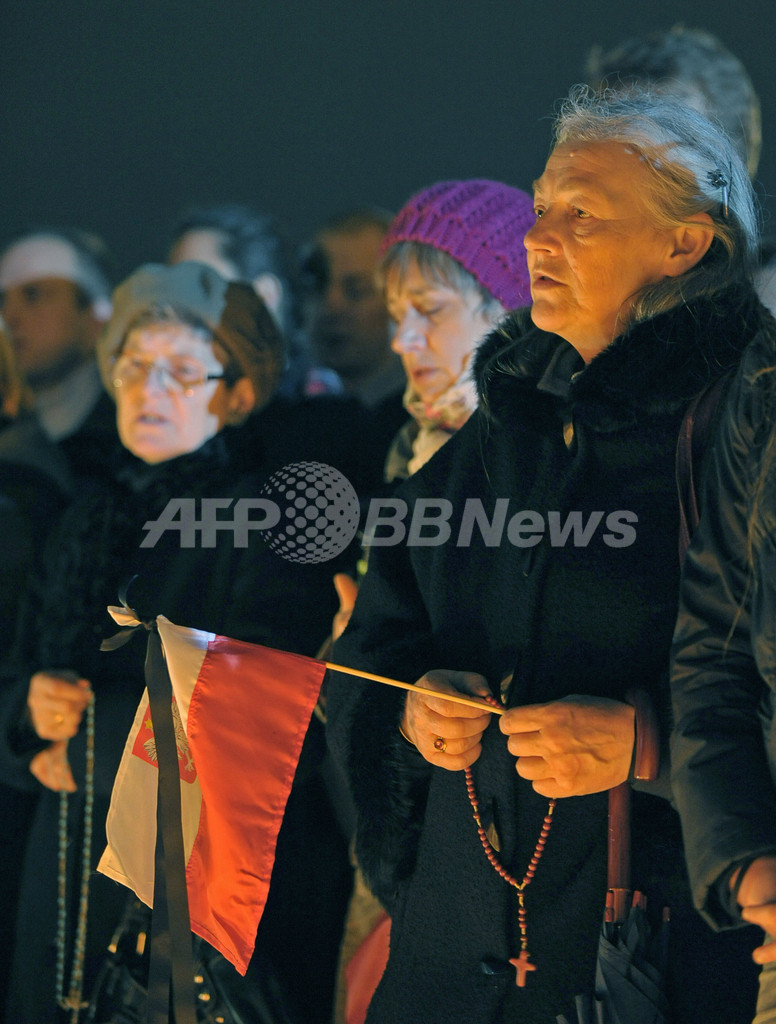 首都ワルシャワ(Warsaw)の大統領府では、数万人の市民が次々と集まり、国歌を歌い、献花した。