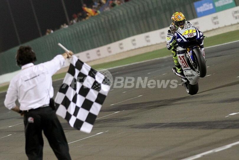 【4月12日 AFP】世界ロードレース選手権(WGP 2010)第1戦カタールGP、MotoGPクラス決勝。2008、09年の年間王者フィアット・ヤマハ(Fiat Yamaha)のバレンティーノ・ロッシ(Valentino Rossi、イタリア)が、42分50秒099で開幕戦を制した。