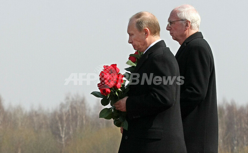 ポーランド国歌が演奏されるなかプーチン首相は台に置かれたひつぎに赤いバラを供え、頭を下げた。プーチン首相は事故原因の調査を指揮しているが、ロシアの当局者はすでに、飛行高度が低すぎるという航空管制官の警告をポーランドのパイロットが無視したと語っている。