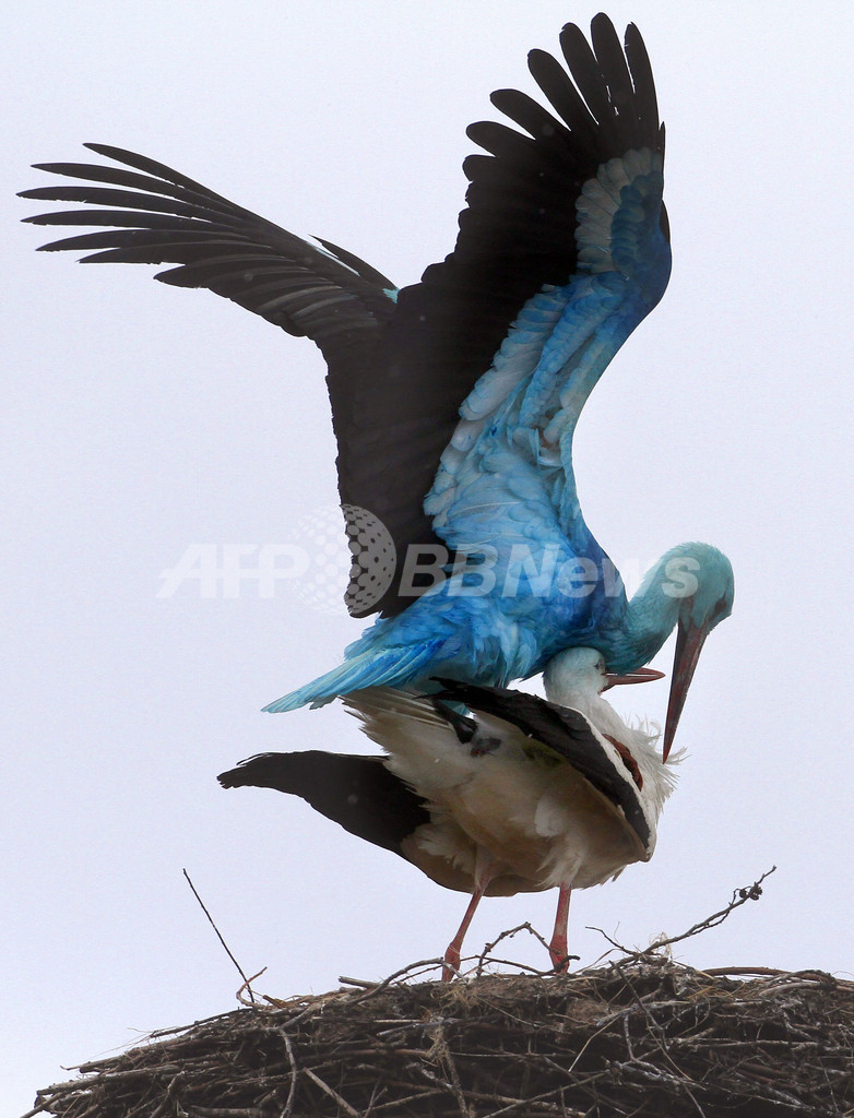 ニュース ライフ こぼれ話 「幸せの青い鳥」!?ドイツで全身真っ青のコウノトリが話題に 2010年4月12日 16:44 発信地:ビーゲン/ドイツ [ ヨーロッパ ドイツ ] このニュースをシェア ‹ › ❮ 7/8 ❯ ドイツ東部の町ビーゲン(Biegen)で、全身が青色のコウノトリが話題となっている。専門家によると、青い羽は、青色の塗料を全身に浴びた可能性が高いという。写真は、巣で、つがいのメスのコウノトリと一緒に過ごす青色のコウノトリ(2010年4月10日撮影)。(c)AFP/DDP/MICHAEL URBAN 画像作成中 ! 【4月12日 AFP】ドイツ東部の町ビーゲン(Biegen)で、全身が青色のコウノトリが話題となっている。(c)AFP/DDP ライフ 一覧へ> メディア・報道関係・法人の方向け 写真・動画 購入のお問合せ>