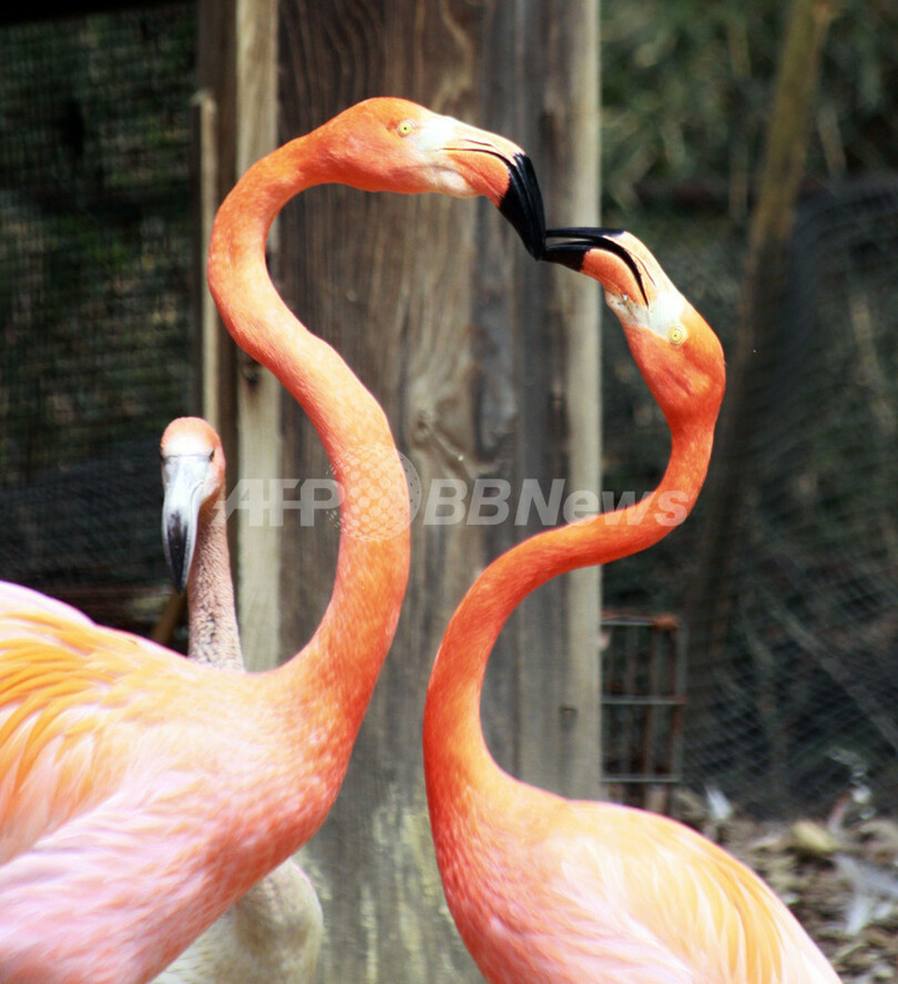 ニュース ライフ こぼれ話 フラミンゴの「ハート」型は求愛の印、埼玉 2010年4月12日 17:15 発信地:埼玉 [ アジア・オセアニア 埼玉 ] このニュースをシェア ‹ › ❮ 2/5 ❯ 埼玉県東松山市にある埼玉県こども動物自然公園(Saitama Children's Zoo)で求愛ダンスをするベニイロフラミンゴ(2010年4月11日撮影)。(c)AFP/Yoshikazu TSUNO 画像作成中 ! 【4月12日 AFP】埼玉県東松山市にある埼玉県こども動物自然公園(Saitama Children's Zoo)で11日、首を曲げたり伸ばしたりして求愛ダンスをするベニイロフラミンゴの姿が見られた。2羽の首は「ハート」型を作っているようにも見えた。(c)AFP ライフ 一覧へ> メディア・報道関係・法人の方向け 写真・動画 購入のお問合せ>