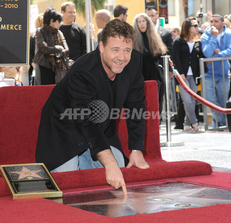 【4月13日 AFP】『グラディエーター(Gladiator)』や『ビューティフル・マインド(A Beautiful Mind)』などの作品で知られる俳優ラッセル・クロウ(Russell Crowe)が、ハリウッドの殿堂「ウォーク・オブ・フェーム(Hollywood Walk of Fame)」入りを果たし、12日に記念式典が開催された。