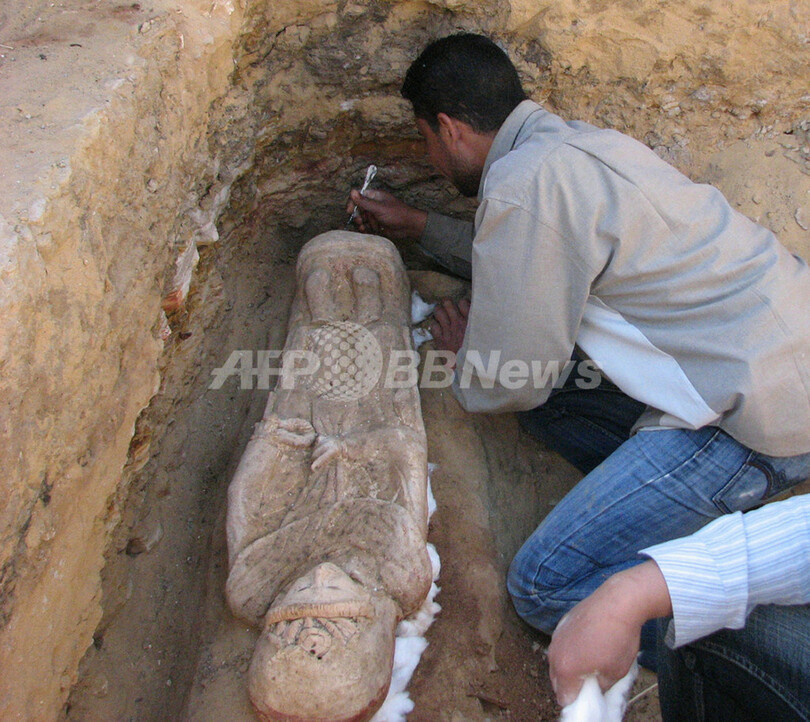 【4月13日 AFP】エジプト考古最高評議会(Egyptian Supreme Council of Antiquities)は12日、カイロ(Cairo)の南西約300キロにあるバハレイヤオアシス(Bahariya Oasis)の古代の墓地跡で、凝った装飾の施された石こうのサルコファガス(石棺)に入れられた、約2300年前のローマ時代のミイラを発掘したと発表した。
