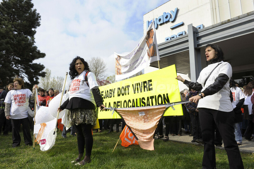 ニュース 政治・経済 こぼれ話 ブラとパンティーで下着工場閉鎖に反対、フランス 2010年4月14日 19:49 発信地:リヨン/フランス [ ヨーロッパ フランス ] このニュースをシェア ‹ › ❮ 3/5 ❯ フランス、リヨン(Lyon)近郊の仏下着会社レジャビー(Lejaby)の工場前で工場閉鎖に反対する同社の従業員ら。Tシャツには「職を守ろう。工場移転に反対。フランス国内に雇用を」のスローガン(2010年4月12日撮影)。(c)AFP/PHILIPPE DESMAZES 画像作成中 ! 【4月14日 AFP】フランスの下着会社レジャビー(Lejaby)の従業員らが12日、労使協議会が開かれたリヨン(Lyon)近郊の工場前で「職を守ろう。工場移転に反対。フランス国内に雇用を」などと書いたTシャツの上にパンティーとブラジャーをつけた姿で抗議した。 レジャビーは4月初旬、仏国内にある3工場の閉鎖を発表しており、従業員197人の解雇が見込まれている。(c)AFP 政治・経済 一覧へ> メディア・報道関係・法人の方向け 写真・動画 購入のお問合せ>