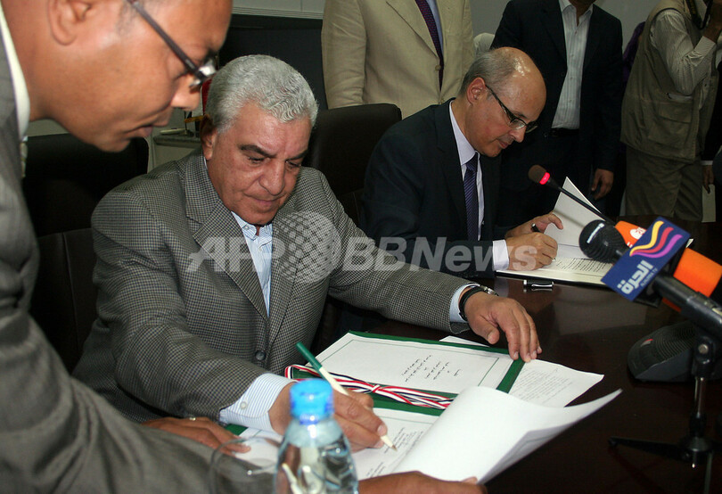 エジプト・カイロ(Cairo)で行われた、国外に持ち出された文化財の返還に合意したスイスとの調印式典の席で返還された足指は、今後、カイロにあるエジプト考古学博物館(Egyptian Museum)に展示されるという。(c)AFP