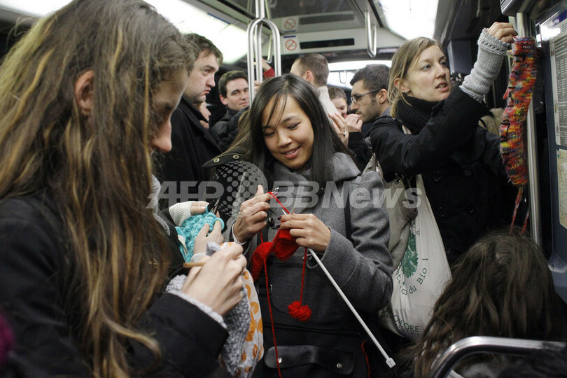 ニュース ライフ こぼれ話 パリ地下鉄に「編み物集団」が出現 2010年4月15日 14:43 発信地:パリ/フランス [ ヨーロッパ フランス ] このニュースをシェア ‹ › ❮ 7/7 ❯ パリ(Paris)の地下鉄駅に14日、編み物をする若者の集団が突如出現した。見知らぬ人々がインターネットの呼びかけに応じて特定の場所に集結するイベント「フラッシュモブ」によるもので、若者の編み物グループが開催した。参加者たちは乗車した地下鉄の中で、編み物を楽しんだ。写真は、パリの地下鉄の中で編み物をする参加者たち(2010年4月14日撮影)。(c)AFP/PATRICK KOVARIK 画像作成中 ! 【4月15日 AFP】パリ(Paris)の地下鉄駅に14日、編み物をする若者の集団が突如出現した。見知らぬ人々がインターネットの呼びかけに応じて特定の場所に集結するイベント「フラッシュモブ」によるもので、若者の編み物グループが開催した。参加者たちは乗車した地下鉄の中で、編み物を楽しんだ。(c)AFP ライフ 一覧へ> メディア・報道関係・法人の方向け 写真・動画 購入のお問合せ>
