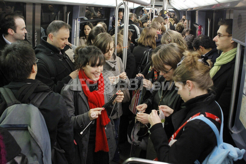 ニュース ライフ こぼれ話 パリ地下鉄に「編み物集団」が出現 2010年4月15日 14:43 発信地:パリ/フランス [ ヨーロッパ フランス ] このニュースをシェア ‹ › ❮ 3/7 ❯ パリ(Paris)の地下鉄駅に14日、編み物をする若者の集団が突如出現した。見知らぬ人々がインターネットの呼びかけに応じて特定の場所に集結するイベント「フラッシュモブ」によるもので、若者の編み物グループが開催した。参加者たちは乗車した地下鉄の中で、編み物を楽しんだ。写真は、パリの地下鉄の中で編み物をする参加者たち(2010年4月14日撮影)。(c)AFP/PATRICK KOVARIK 画像作成中 ! 【4月15日 AFP】パリ(Paris)の地下鉄駅に14日、編み物をする若者の集団が突如出現した。見知らぬ人々がインターネットの呼びかけに応じて特定の場所に集結するイベント「フラッシュモブ」によるもので、若者の編み物グループが開催した。参加者たちは乗車した地下鉄の中で、編み物を楽しんだ。(c)AFP ライフ 一覧へ> メディア・報道関係・法人の方向け 写真・動画 購入のお問合せ>