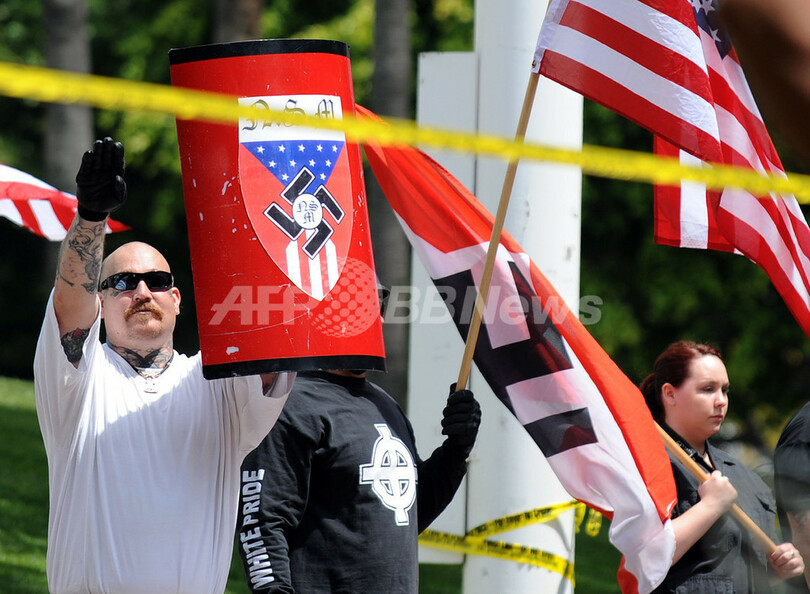 【4月18日 AFP】米ロサンゼルス(Los Angeles)市役所前で17日、ネオナチを名乗る集団のメンバー100人が移民流入に反対するデモを行い、それに対抗するために集まった黒人やゲイコミュニティーのメンバーらと衝突した。