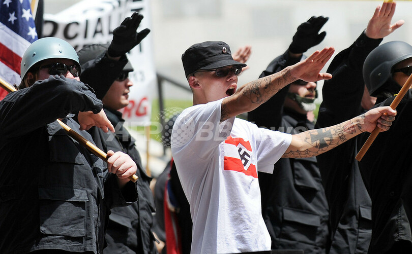 【4月18日 AFP】米ロサンゼルス(Los Angeles)市役所前で17日、ネオナチを名乗る集団のメンバー100人が移民流入に反対するデモを行い、それに対抗するために集まった黒人やゲイコミュニティーのメンバーらと衝突した。