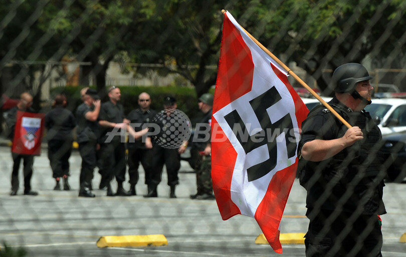 【4月18日 AFP】米ロサンゼルス(Los Angeles)市役所前で17日、ネオナチを名乗る集団のメンバー100人が移民流入に反対するデモを行い、それに対抗するために集まった黒人やゲイコミュニティーのメンバーらと衝突した。