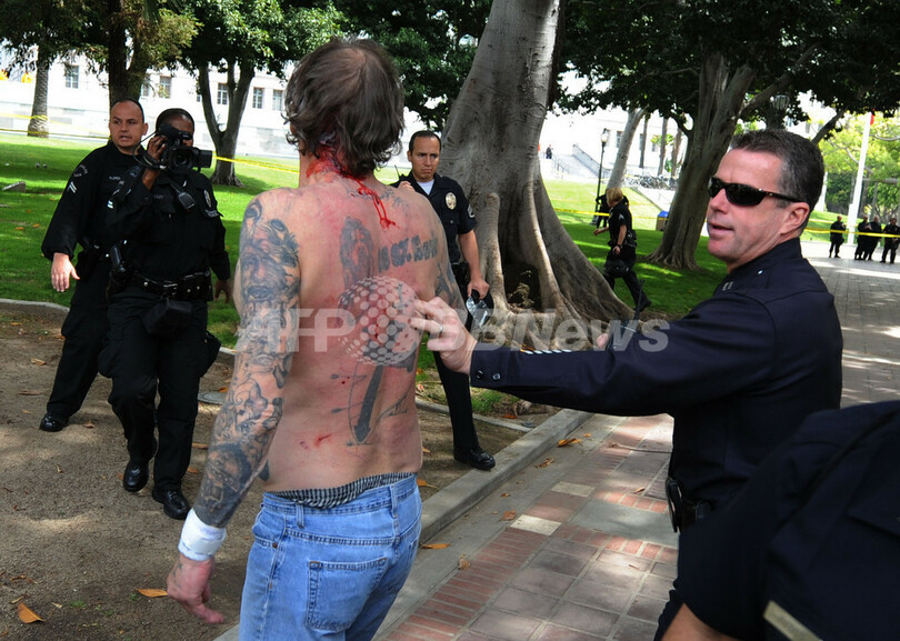 【4月18日 AFP】米ロサンゼルス(Los Angeles)市役所前で17日、ネオナチを名乗る集団のメンバー100人が移民流入に反対するデモを行い、それに対抗するために集まった黒人やゲイコミュニティーのメンバーらと衝突した。