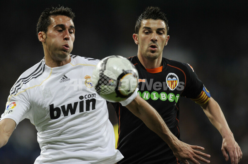 【4月19日 AFP】(写真追加)09-10スペイン1部リーグ第33節、レアル・マドリード(Real Madrid)対バレンシア(Valencia CF)。レアル・マドリードは2-0で勝利し、首位FCバルセロナ(FC Barcelona)との勝ち点差を1に縮めた。