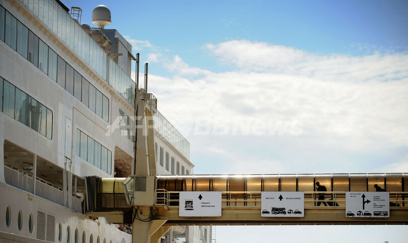 写真は、スペイン北部サンタンデル(Santander)で、火山灰の影響で航空便が欠航となったため、英国行きのフェリーに乗り込む英国人旅行客ら(2010年4月19日撮影)。(c)AFP/RAFA RIVAS