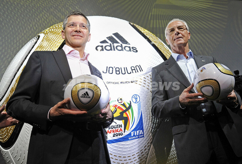スポーツ サッカー W杯南アフリカ大会決勝公式球「ジャブラニ」発表 2010年4月21日 12:45 発信地:ヘルツォーゲンアウラッハ/ドイツ [ ヨーロッパ ドイツ ] このニュースをシェア ‹ › ❮ 8/8 ❯ スポーツ用品メーカーのアディダス(%%Adidas%%)は20日、ドイツのヘルツォーゲンアウラッハ(Herzogenaurach)で2010年サッカーW杯南アフリカ大会(%%2010 World Cup%%)の決勝戦のみで使用される公式球「ジャブラニ(JO'BULANI)」を公表した。写真はボールを手にする元ドイツ代表フランツ・ベッケンバウアー(%%Franz Beckenbauer%%)氏(右)とアディダスの最高経営責任者(CEO)ヘルベルト・ハイナー(%%Herbert Hainer%%)氏。(2010年4月20日撮影)(c)AFP/DDP/JOERG KOCH 画像作成中 ! 【4月21日 AFP】スポーツ用品メーカーのアディダス(Adidas)は20日、ドイツのヘルツォーゲンアウラッハ(Herzogenaurach)で2010年サッカーW杯南アフリカ大会(2010 World Cup)の決勝戦のみで使用される公式球「ジャブラニ(JO'BULANI)」を公表した。(c)AFP サッカー 一覧へ> メディア・報道関係・法人の方向け 写真・動画 購入のお問合せ>