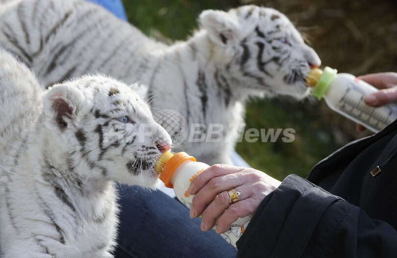 ニュース ライフ ホワイトタイガーの赤ちゃんたち、ドイツ 2010年4月22日 19:09 発信地:ホーデンハーゲン/ドイツ [ ヨーロッパ ドイツ ] このニュースをシェア ‹ › ❮ 7/10 ❯ ドイツ北部ホーデンハーゲン(Hodenhagen)のサファリパーク「セレンゲティ公園(Serengeti Park)」で前月8日に生まれたばかりの生後6週間のホワイトタイガーの赤ちゃん2頭、リコ(Rico)ちゃんとキコ(Kico)ちゃん。2頭の両親、ビアンカ(Bianca)とポール(Paul)が育児を放棄したため、飼育係が育てている。写真は、飼育係にほ乳瓶でお乳をもらうリコちゃんとキコちゃん(2010年4月21日撮影)。(c)AFP/DDP/NIGEL TREBLIN 画像作成中 ! 【4月22日 AFP】ドイツ北部ホーデンハーゲン(Hodenhagen)のサファリパーク「セレンゲティ公園(Serengeti Park)」で前月8日に生まれたばかりの生後6週間のホワイトタイガーの赤ちゃん2頭、リコ(Rico)ちゃんとキコ(Kico)ちゃん。(c)AFP ライフ 一覧へ> メディア・報道関係・法人の方向け 写真・動画 購入のお問合せ>