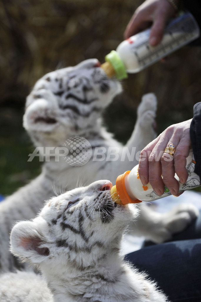 ニュース ライフ ホワイトタイガーの赤ちゃんたち、ドイツ 2010年4月22日 19:09 発信地:ホーデンハーゲン/ドイツ [ ヨーロッパ ドイツ ] このニュースをシェア ‹ › ❮ 4/10 ❯ ドイツ北部ホーデンハーゲン(Hodenhagen)のサファリパーク「セレンゲティ公園(Serengeti Park)」で前月8日に生まれたばかりの生後6週間のホワイトタイガーの赤ちゃん2頭、リコ(Rico)ちゃんとキコ(Kico)ちゃん。2頭の両親、ビアンカ(Bianca)とポール(Paul)が育児を放棄したため、飼育係が育てている。写真は、飼育係にほ乳瓶でお乳をもらうリコちゃんとキコちゃん(2010年4月21日撮影)。(c)AFP/DDP/NIGEL TREBLIN 画像作成中 ! 【4月22日 AFP】ドイツ北部ホーデンハーゲン(Hodenhagen)のサファリパーク「セレンゲティ公園(Serengeti Park)」で前月8日に生まれたばかりの生後6週間のホワイトタイガーの赤ちゃん2頭、リコ(Rico)ちゃんとキコ(Kico)ちゃん。(c)AFP ライフ 一覧へ> メディア・報道関係・法人の方向け 写真・動画 購入のお問合せ>