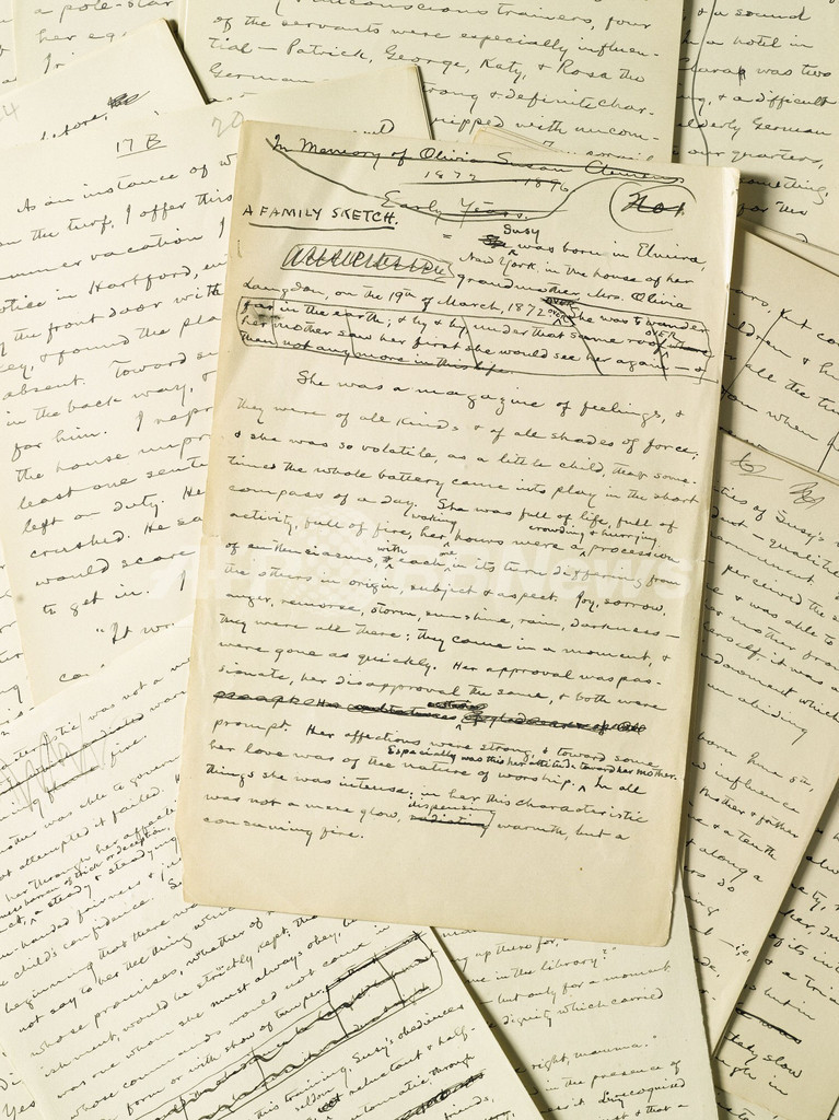 全65ページの未編集原稿は「A Family Sketch(家族の素描)」と題され、自叙伝的な要素を持つ。髄膜炎のため24歳で死去した愛娘スージーにささげる形で書き始められたもので、子どもの頃の回想や出会った人々、さまざまなテーマのエッセイがとりとめなく物語風に綴られ、サザビーズは、トウェインの「これまでで最も私的で内省的な自伝」と説明している。予想落札価格は12~16万ドル(約1100~1500万円)。