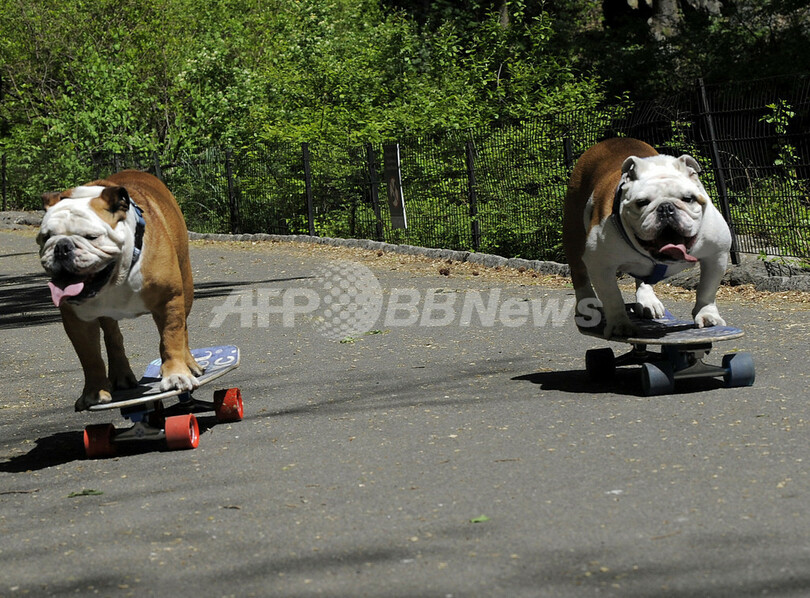 【4月26日 AFP】スケートボード世界最速のイヌ、ティルマン(Tillman)が23日、ニューヨーク(New York)のセントラルパーク(Central Park)で、翌24日に米大リーグ(MLB)のニューヨーク・メッツ(New York Mets)のホーム球場シティ・フィールド(Citi Field)で開かれるドッグ大会「バーク・イン・ザ・パーク(Bark in the Park)」に向け最終調整に臨んだ。(c)AFP