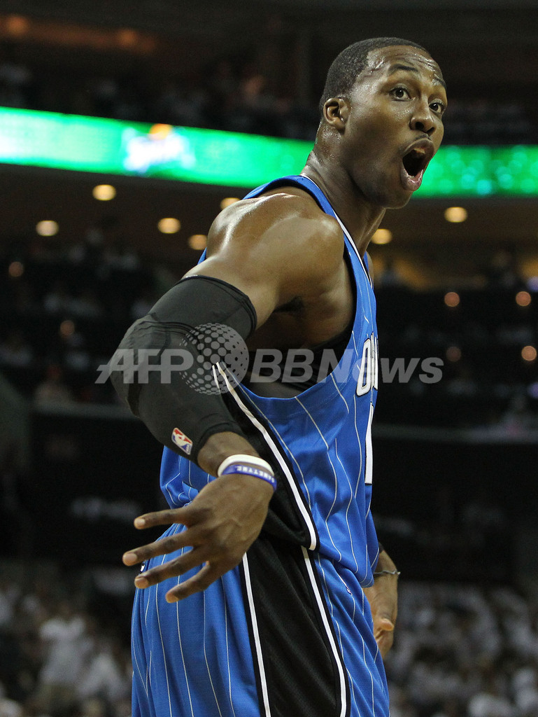 13得点、8リバウンドを記録したマジックのドワイト・ハワード(Dwight Howard)は第4クォーター、ボブキャッツのシュートを5本ブロックをしたが、残り3分36秒でファウルアウトとなった。(c)AFP