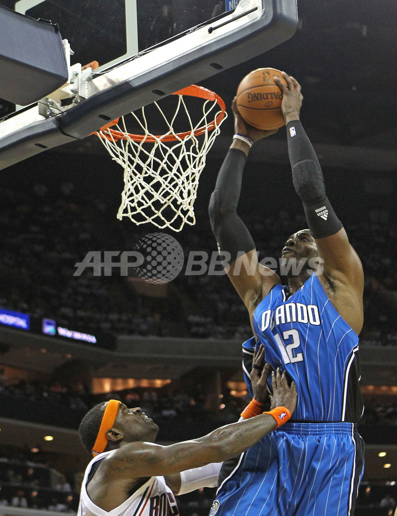 13得点、8リバウンドを記録したマジックのドワイト・ハワード(Dwight Howard)は第4クォーター、ボブキャッツのシュートを5本ブロックをしたが、残り3分36秒でファウルアウトとなった。(c)AFP
