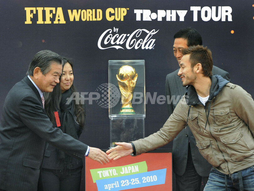 スポーツ サッカー W杯トロフィー 日本に到着 2010年4月25日 15:25 発信地:東京 [ アジア・オセアニア 東京 ] このニュースをシェア ‹ › ❮ 1/2 ❯ 都内の羽田空港(Haneda Airport)で行われたW杯優勝トロフィー到着セレモニーに出席する日本サッカー協会(%%Japan Football Association%%、%%JFA%%)の川淵三郎(%%Saburo Kawabuchi%%)名誉会長(左)と元日本代表の中田英寿(%%Hidetoshi Nakata%%)氏(右)。(2010年4月23日撮影)(c)AFP/Toru YAMANAKA 画像作成中 ! 【4月25日 AFP】サッカーW杯の優勝トロフィーが23日、都内の羽田空港(Haneda Airport)に到着した。2010年サッカーW杯南アフリカ大会(2010 World Cup)の開幕に先立ち、トロフィーは世界86か国を225日間かけて巡回している。(c)AFP サッカー 一覧へ> メディア・報道関係・法人の方向け 写真・動画 購入のお問合せ>