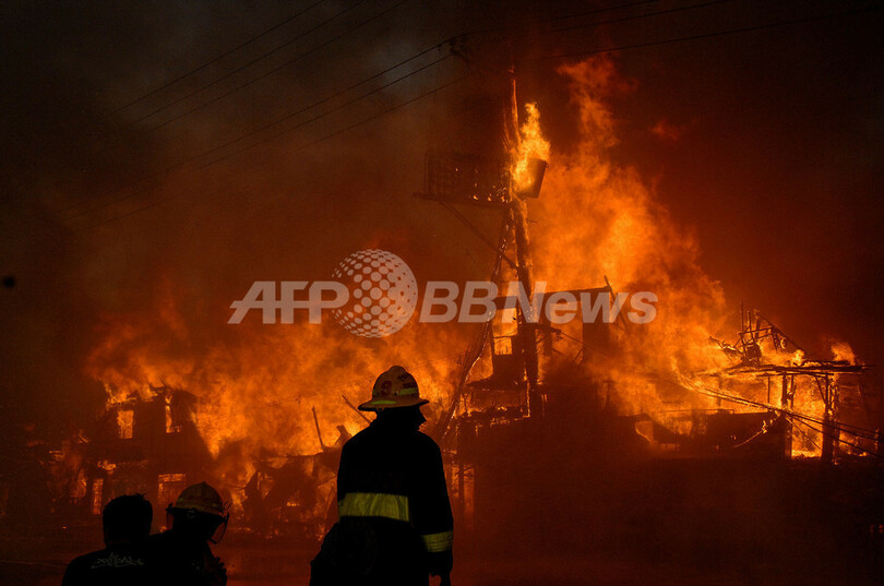 ニュース 社会 フィリピンのスラム街で火災、600棟焼失 2010年4月26日 11:01 発信地:マニラ/フィリピン [ アジア・オセアニア フィリピン ] このニュースをシェア ‹ › ❮ 3/8 ❯ フィリピンのマニラ(Manila)首都圏ケソン市(Quezon City)のスラム街で25日午後、600棟以上の住宅が焼ける大規模な火災が発生した。火は夜まで燃え続け、数千人が焼け出された。火災の原因は分かっていない。マニラのスラム街は拾った木材で作られた住宅が密集し重なり合っているため、火災に弱い。(c)AFP写真は、消火にあたる消防士ら(2010年4月25日撮影)。(c)AFP/NOEL CELIS 画像作成中 ! 【4月26日 AFP】フィリピンのマニラ(Manila)首都圏ケソン市(Quezon City)のスラム街で25日午後、600棟以上の住宅が焼ける大規模な火災が発生した。火は夜まで燃え続け、数千人が焼け出された。火災の原因は分かっていない。マニラのスラム街は拾った木材で作られた住宅が密集し重なり合っているため、火災に弱い。(c)AFP 社会 一覧へ> メディア・報道関係・法人の方向け 写真・動画 購入のお問合せ>