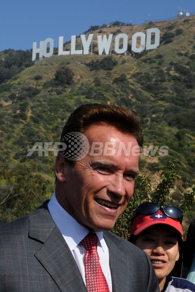 会見にはカリフォルニア(California)州のアーノルド・シュワルツェネッガー(Arnold Schwarzenegger)知事も出席。アクション俳優として活躍していた同知事は、スターになる夢を抱いていた無名のボディービルダー時代にハリウッドサインに刺激を受けたと語った。
