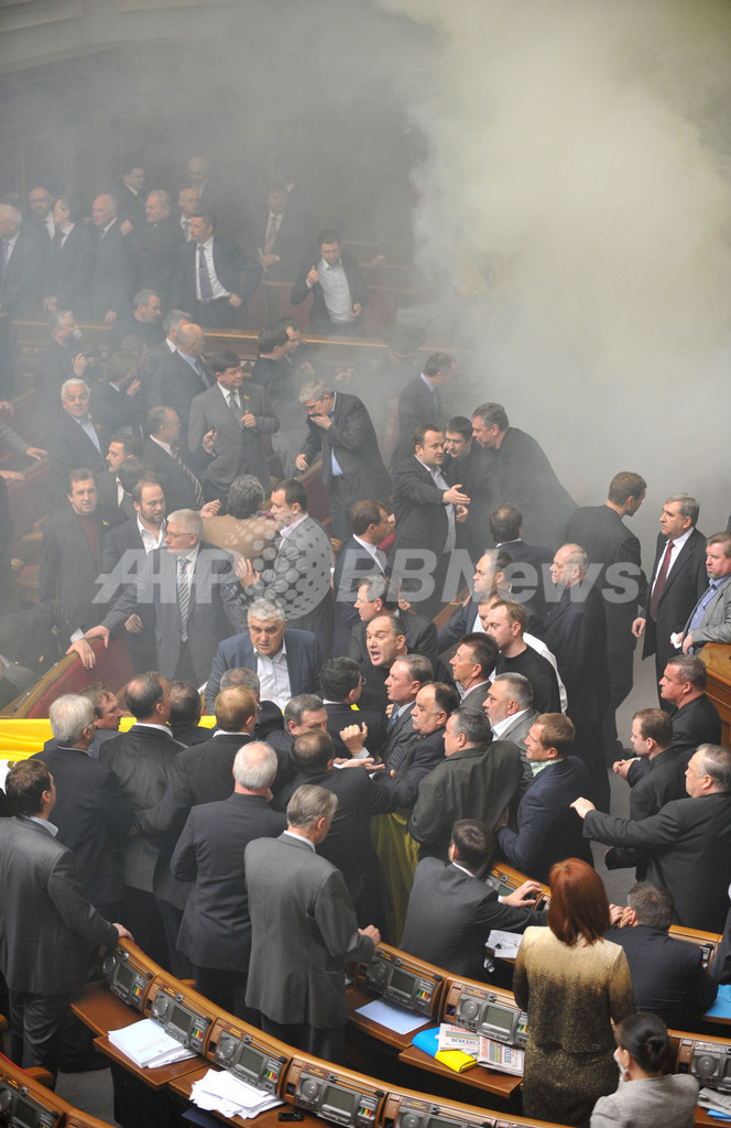 ニュース 政治・経済 ウクライナ議会、露海軍の駐留期限延長で大パニックに 2010年4月27日 19:13 発信地:キエフ/ウクライナ [ ロシア・CIS ウクライナ ] このニュースをシェア ‹ › ❮ 32/35 ❯ ウクライナ最高会議(議会)は27日、ロシア黒海艦隊の駐留期限を2042年まで延長する協定を批准した。議会では延長に反対する野党勢力が卵を投げ、発煙筒を使うなどして、議場内が大パニックとなった(2010年4月27日撮影)。(c)AFP/SERGEI SUPINSKY【参考】映像はYoutubeのAFPBBチャンネルでご覧いただけます 画像作成中 ! 【4月27日 AFP】(写真追加)ウクライナ最高会議(議会)は27日、ロシア黒海艦隊の駐留期限を2042年まで延長する協定を批准した。議会では反対派が卵を投げ、発煙筒を使うなどして、議場内が大パニックとなった。(c)AFP 政治・経済 一覧へ> メディア・報道関係・法人の方向け 写真・動画 購入のお問合せ>