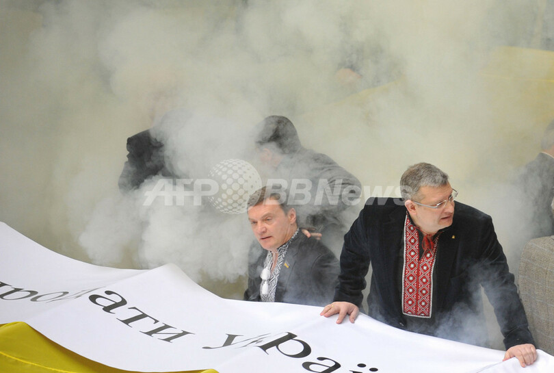 ニュース 政治・経済 ウクライナ議会、露海軍の駐留期限延長で大パニックに 2010年4月27日 19:13 発信地:キエフ/ウクライナ [ ロシア・CIS ウクライナ ] このニュースをシェア ‹ › ❮ 20/35 ❯ ウクライナ最高会議(議会)は27日、ロシア黒海艦隊の駐留期限を2042年まで延長する協定を批准した。議会では延長に反対する野党勢力が卵を投げ、発煙筒を使うなどして、議場内が大パニックとなった(2010年4月27日撮影)。(c)AFP/SERGEI SUPINSKY【参考】映像はYoutubeのAFPBBチャンネルでご覧いただけます 画像作成中 ! 【4月27日 AFP】(写真追加)ウクライナ最高会議(議会)は27日、ロシア黒海艦隊の駐留期限を2042年まで延長する協定を批准した。議会では反対派が卵を投げ、発煙筒を使うなどして、議場内が大パニックとなった。(c)AFP 政治・経済 一覧へ> メディア・報道関係・法人の方向け 写真・動画 購入のお問合せ>