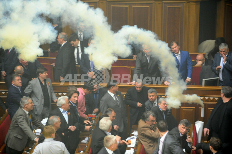 ニュース 政治・経済 ウクライナ議会、露海軍の駐留期限延長で大パニックに 2010年4月27日 19:13 発信地:キエフ/ウクライナ [ ロシア・CIS ウクライナ ] このニュースをシェア ‹ › ❮ 3/35 ❯ ウクライナ最高会議(議会)は27日、ロシア黒海艦隊の駐留期限を2042年まで延長する協定を批准した。議会では延長に反対する野党勢力が卵を投げ、発煙筒を使うなどして、議場内が大パニックとなった(2010年4月27日撮影)。(c)AFP/SERGEI SUPINSKY【参考】映像はYoutubeのAFPBBチャンネルでご覧いただけます 画像作成中 ! 【4月27日 AFP】(写真追加)ウクライナ最高会議(議会)は27日、ロシア黒海艦隊の駐留期限を2042年まで延長する協定を批准した。議会では反対派が卵を投げ、発煙筒を使うなどして、議場内が大パニックとなった。(c)AFP 政治・経済 一覧へ> メディア・報道関係・法人の方向け 写真・動画 購入のお問合せ>