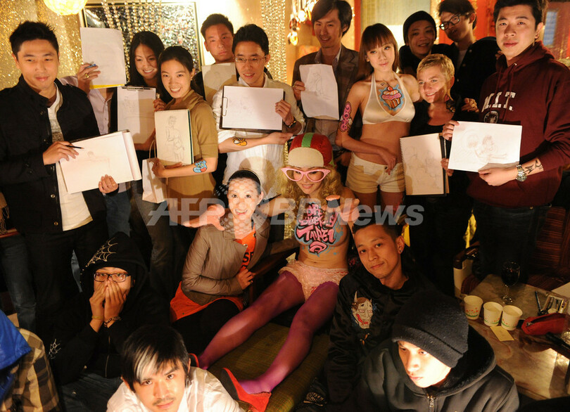 ニュース ライフ 居酒屋でヌードデッサン!?台北で「スケッチバー」イベント 2010年4月28日 19:58 発信地:台北/台湾 [ 中国・台湾 台湾 ] このニュースをシェア ‹ › ❮ 4/11 ❯ 台湾・台北(Taipei)のバーで25日、裸体にドローイングをしたり、客がヌードモデルの絵を描くイベントが開催された。このイベントは、米ニューヨーク(New York)生まれのアート・グループ、「ドクター・スケッチーの反美術学校(Dr Sketchy's Anti-Art School)」が主催したもの。このイベントは普段からパブやバーで開かれる。参加者は有料で、セミヌードの専任モデルをその場でスケッチする。 写真は、モデルの女性2人を囲み、自分が描いたデッサンを手に記念撮影する客たち(2010年4月25日撮影)。(c)AFP/Sam YEH 画像作成中 ! 【4月28日 AFP】台湾・台北(Taipei)のバーで25日、裸体にドローイングをしたり、客がヌードモデルの絵を描くイベントが開催された。(c)AFP ライフ 一覧へ> メディア・報道関係・法人の方向け 写真・動画 購入のお問合せ>