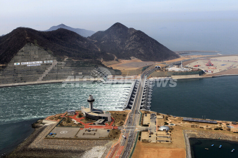 【4月28日 AFP】韓国西部の全羅北道(Jeollabuk-do)で進んでいる「セマングム(Saemangeum)干拓事業」の一部で、全長33.9キロ、世界最長の防潮堤が完成し、27日に完工式が行われた。