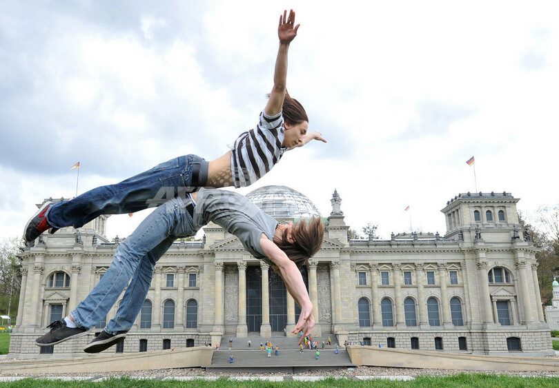ニュース ライフ こぼれ話 屋根までジャンプ、ベルリンでショーのPR 2010年4月29日 20:11 発信地:ベルリン/ドイツ [ ヨーロッパ ドイツ ] このニュースをシェア ‹ › ❮ 7/8 ❯ ドイツ・ベルリン(Berlin)にあるミニチュア建物のテーマパーク「Modellpark Berlin-Brandenburg」で27日、来月から上演されるショー「メード・イン・ベルリン(Made in Berlin)」のPRが行われた。ショーは5月6日から9月25日までベルリンの劇場ヴィンターガルテン(Wintergarten)で上演される。写真は、パフォーマンスを披露するアーティストたち(2010年4月27日撮影)。(c)AFP/DD/LENNART PREISS 画像作成中 ! 【4月29日 AFP】ドイツ・ベルリン(Berlin)にあるミニチュア建物のテーマパーク「Modellpark Berlin-Brandenburg」で27日、来月から上演されるショー「メード・イン・ベルリン(Made in Berlin)」のPRが行われた。ショーは5月6日から9月25日までベルリンの劇場ヴィンターガルテン(Wintergarten)で上演される。(c)AFP ライフ 一覧へ> メディア・報道関係・法人の方向け 写真・動画 購入のお問合せ>
